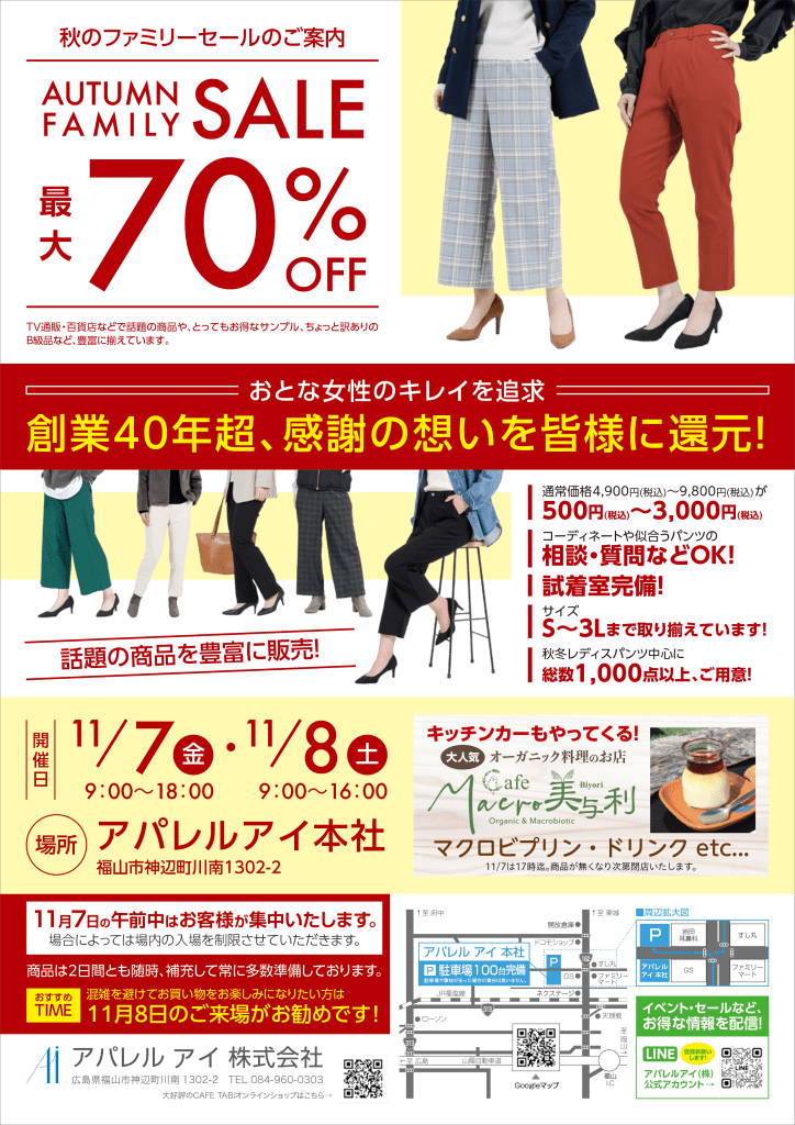 『アパレルアイ』秋のファミリーセールのご案内!!
